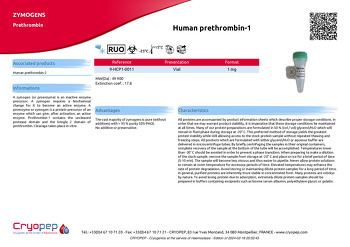 A zymogen (or proenzyme) is an inactive enzyme precursor. A zymogen requires a biochemical change for it to become an active enzyme. A proenzyme or zymogen is a protein precursor of an enzyme which can give, after activation, an active enzyme. Prothrombin-1 contains the uncleaved protease domain and the kringle 2 domain of prothrombin. Cleavage takes place in vitro.