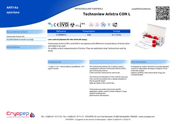 The Technoview Arixtra CAL is always used in combination with the Technoview Arixtra CON L and Technoview Arixtra