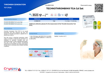 This test covers 4 important parameters which makes it possible to estimate the potential of an individual to generate thrombin and can individualize hyper or hypo-coagulable phenotypes. This test is also used to monitor conventional treatments for hemophilia and when using bypass therapy which is necessary when inhibitors develop in patients.